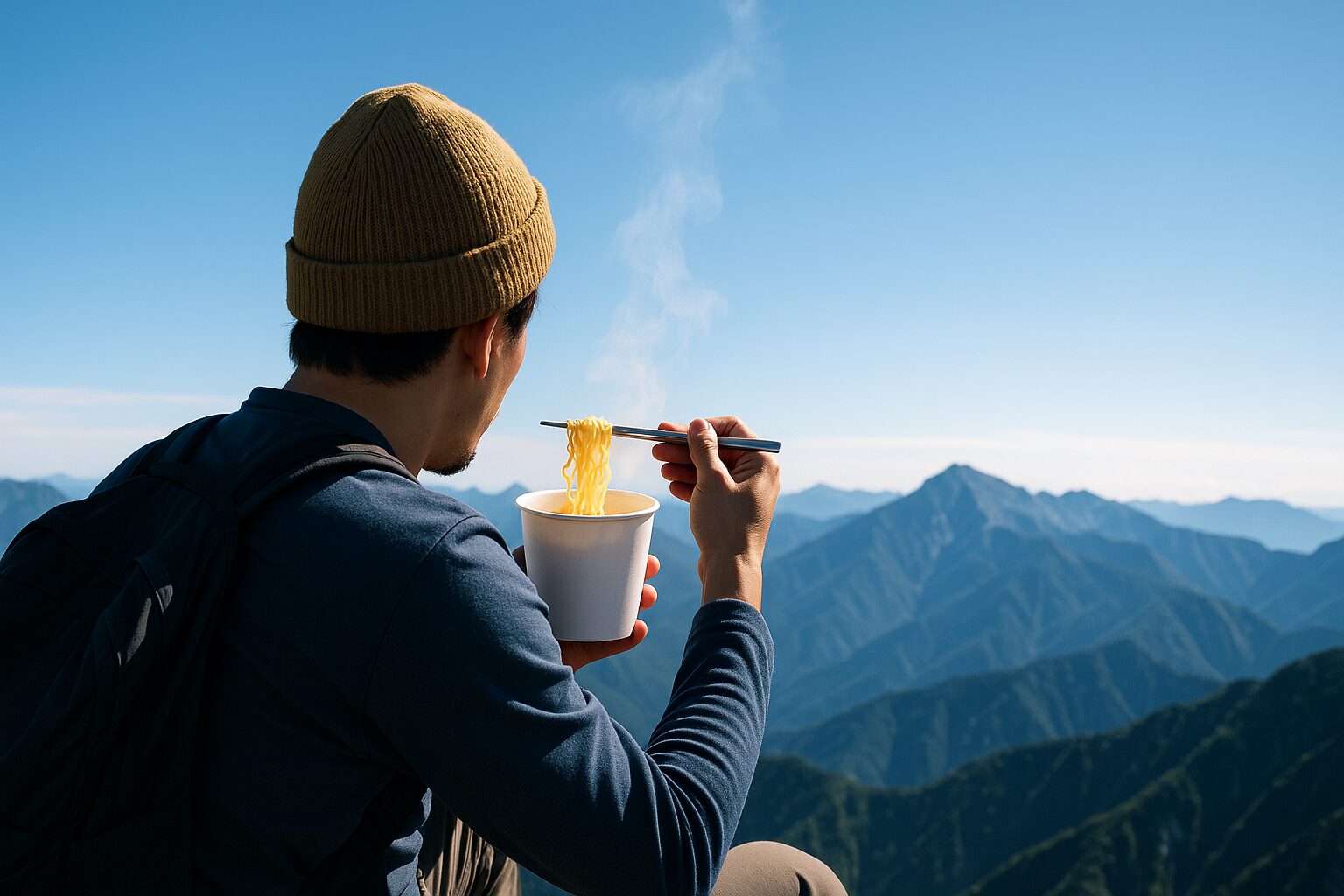 登山の楽しみ方は人それぞれですが、多くの登山者にとって「山頂で食べるカップラーメン」は特別なひとときです。澄んだ空気の中、疲れた体に染みわたる温かいスープは、普段の食事以上に格別な味わいを感じさせてくれます。