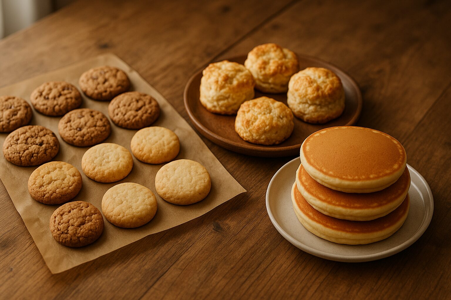 クッキーやスコーンは、ベーキングパウダーなしでも比較的作りやすいお菓子に分類されます。特にクッキーは、膨らみよりも食感やサクサク感が重視されるため、ベーキングパウダーを省いても問題が少ないケースが多いです。