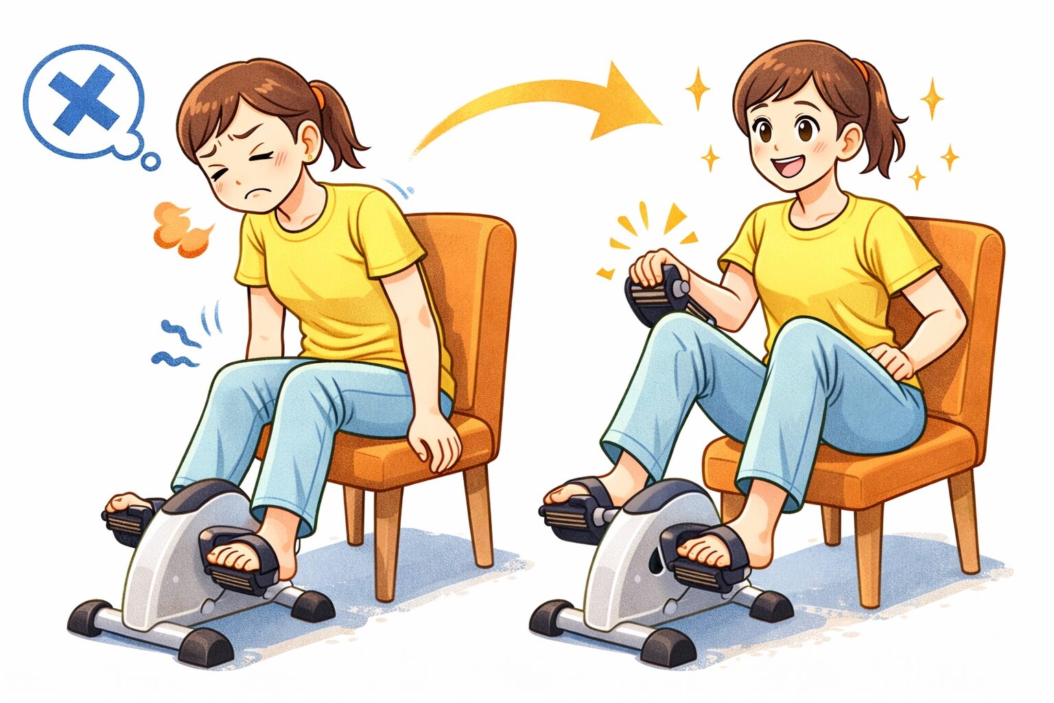 念のためお伝えしますが、足だけのエアロバイクは「やり方の自由度が高い」ぶん、良くも悪くも差が出やすい運動です。