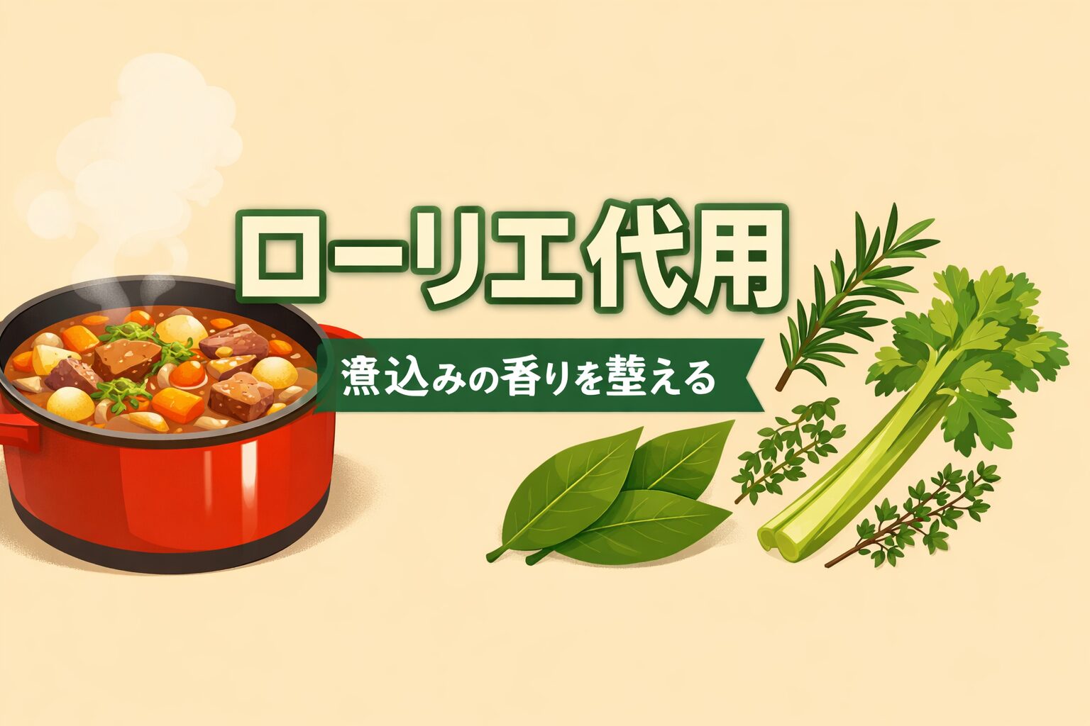 臭みを抑えたいならローズマリーを少量、煮込みの香りをまとめたいならタイム、手元の材料で工夫したいならセロリの葉が現実的でしょう。
