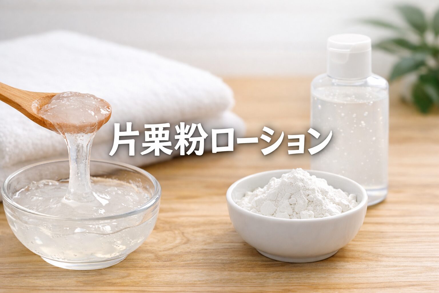 - 片栗粉ローションは、でんぷんの糊化を利用したジェル状の液体(料理のとろみと同じ原理)