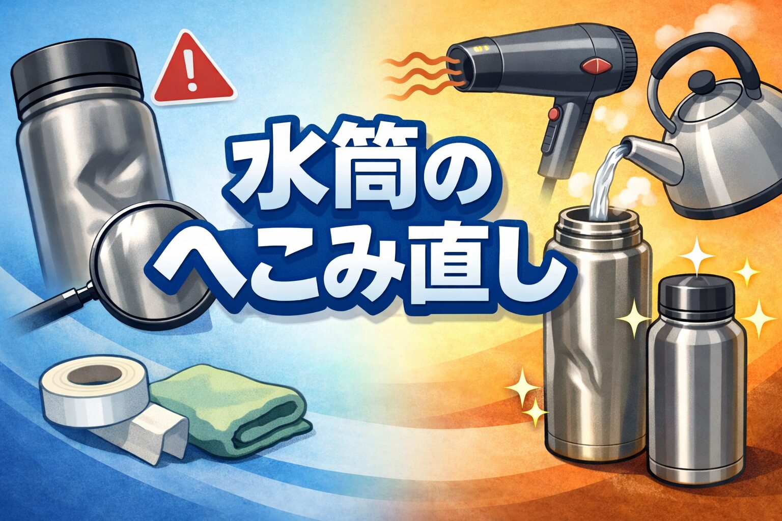 ただし、すぐに買い替えるほどでもないし、修理に出すのは手間だと感じる方も多いはずです。そこで、自宅にあるドライヤーと身近な道具で試せる、水筒凹み直し方をまとめました。