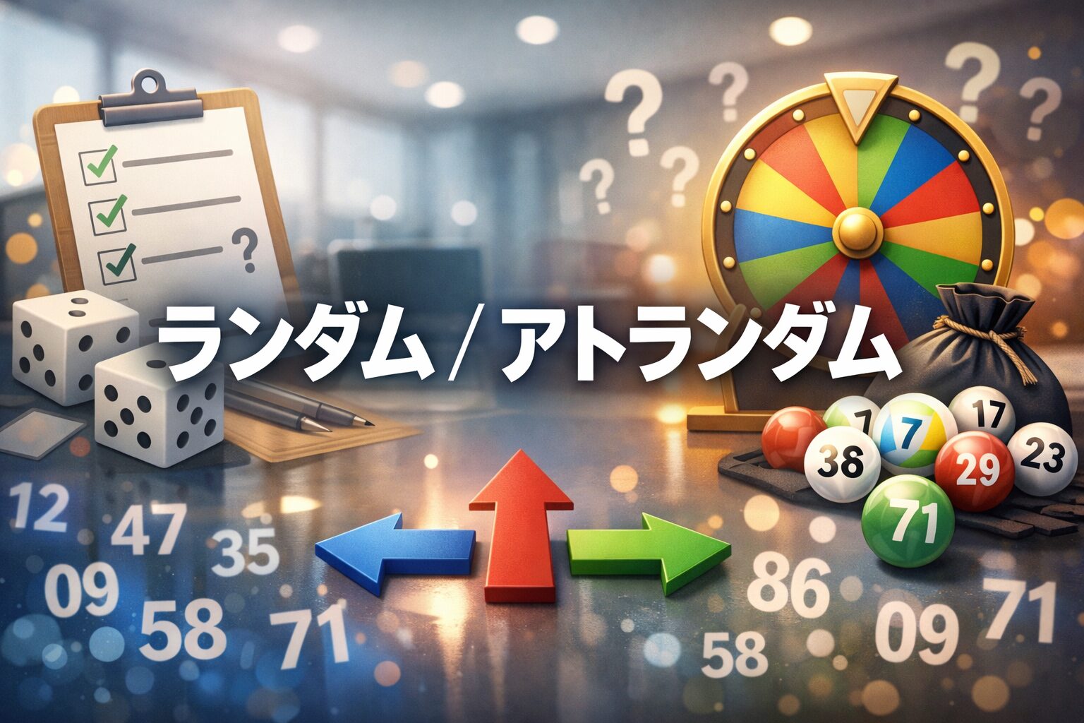 そして実務では、これにもう一段「読み手が止まらないか」という軸が乗ります。もし相手が「アトランダム」という語に馴染みが薄そうなら、言葉を選ぶ以前に、無作為抽選など手続きが伝わる語へ寄せる方が、結果として誤解が減ることが多いです。この点は次の章以降で詳しく扱いますが、入口としては「違いは対象(もの/動作)で見る」と覚えておくと迷いが減ります。