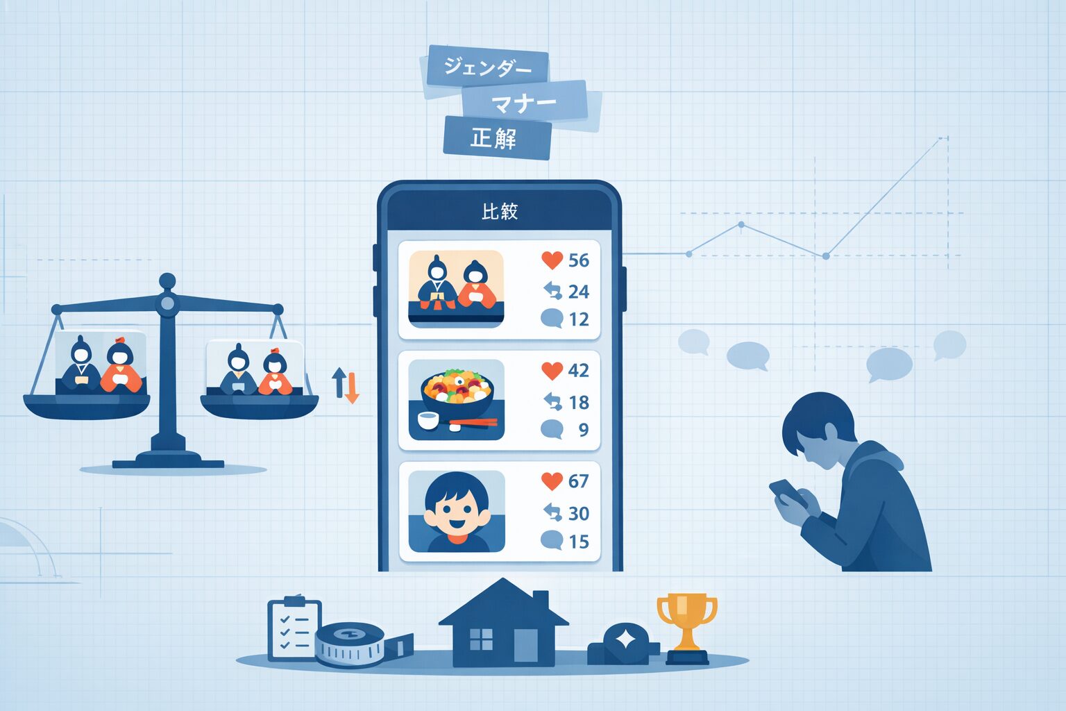 雛人形は「所有物としての格」が出る。食卓は「手間」が出る。子どもの笑顔は「幸福」が出る。ここまで“家庭の出来”がパッケージ化されている行事は珍しい。伝統の話をする前に、比較のスイッチが入る。