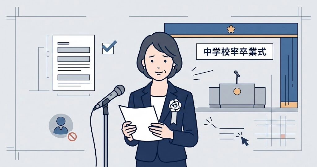 そこでこの記事では、卒業式挨拶 保護者代表というテーマに沿って、中学校の卒業式で失敗しにくい基本の考え方、話しやすい構成、避けたい表現、当日の話し方、そしてそのまま使いやすい例文まで、順番に整理していきます。