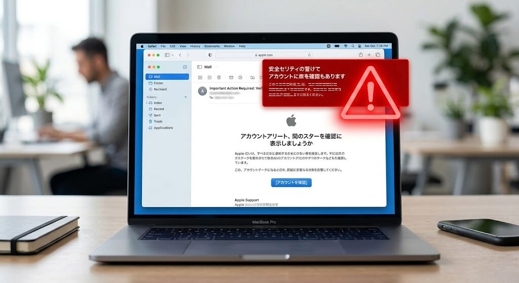 「Appleジャパンからの重要なお知らせ|アカウントセキュリティ確認のご案内」のようなメールが届いたら注意
