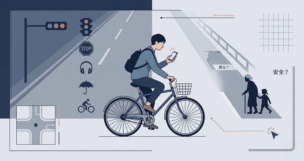 なぜなら、危険行為が危険であることと、道路環境が未整備であることは、同時に成立するからです。インフラが不十分でも、信号無視が安全になるわけではありません。車の運転マナーが悪くても、スマホを見ながら自転車に乗っていい理由にはなりません。ところが反発の多くは、この二つを意図的に混ぜます。すると「守るべきか」という問いが、「守れない事情がある」にすり替わります。