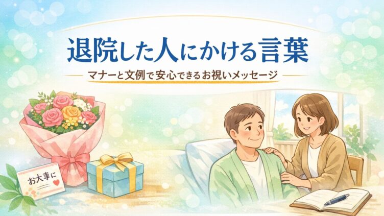 人間関係 退院した人にかける言葉|マナーと文例で安心できるお祝いメッセージ 職場の上司や同僚が退院したとき、どんな言葉をかけたらよいのか迷う方は多いでしょう。体調を気遣う気持ちはあっても、言葉選びを間違えると失礼に感じられることもあります。そこで今回は、退院した人にかける言葉の基本マナーと文例を紹介します。相手との 2026.02.01 人間関係